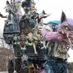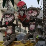 Non sarà forse Venezia o Viareggio, dove le sfilate di maschere e carri allegorici possiedono una fama internazionale, ma la città di Larino è sicuramente la regina del Molise per quanto riguarda i festeggiamenti del Carnevale in termini turistici e di affluenza interna. Il ricco programma della 43esima edizione, spalmato in due giorni – ieri e oggi – e rinviato lo scorso weekend causa maltempo, ha visto fra le altre cose la sfilata dei quattro carri allegorici di cartapesta, il pezzo forte di tutta la manifestazione, caratterizzata anche dalla riconsegna del trofeo Larinella alla Città di Larino da parte del gruppo vincitore della scorsa edizione, dall’esibizione dei corpi di ballo in Piazza del Popolo e dalle visite guidate al Museo Civico e alla Mostra permanente del Carnevale Larinese. Migliaia le persone presenti già ieri al primo corteo – che si ripeterà oggi, domenica 18 febbraio – che hanno potuto godere di un’ottima giornata. I quattro carri di cartapesta, dotati di dispositivi elettrici per rendere animati i personaggi che li compongono, hanno divertito i presenti: “Meno si vede meno si sente meno si sa meglio si sta” è composto dalle tre scimmiette ‘sagge’ che si coprono rispettivamente occhi, orecchie e bocca che invitano secondo un’antica cultura a non vedere, sentire o parlare del male per vivere meglio, ma che in un’accezione contemporanea possono essere anche interpretate come sinonimo di omertà di fronte a situazioni che andrebbero denunciate e invece si rimane al proprio posto per non avere rogne; “La Cultura che conquista” mostra una coppia d’altri tempi sulla canoa del Ministero dei Beni Culturali attraversare il Molise e i suoi siti archeologici sommersi dall’acqua; “Nell’occhio del mirino” una bestia incatenata che raffigura un precario è in balia dei pirati della politica e dei poteri forti; “Tempi moderni” infine raffigura un mostro sovrastato da un essere demoniaco, forse un licantropo guidato dal male.