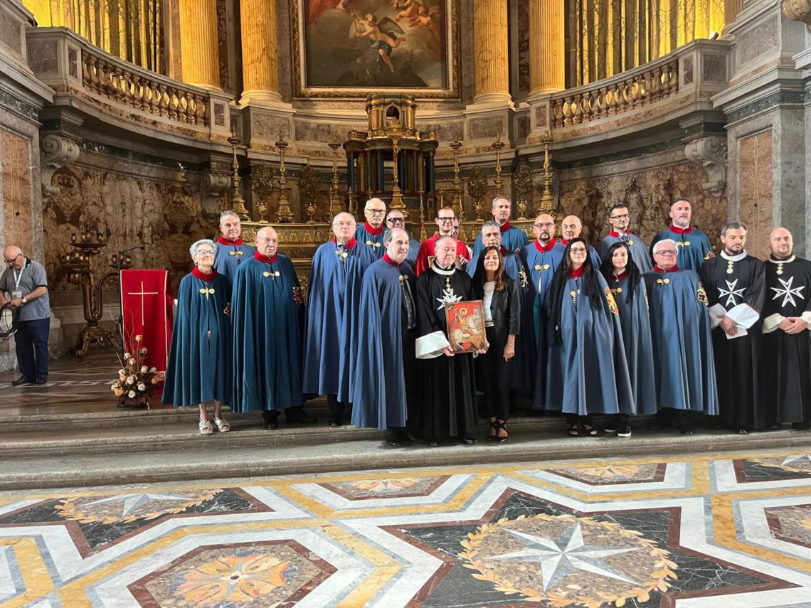 Domenica 14 settembre, i cavalieri costantiniani di Terra di Lavoro insieme con alcuni confratelli della Delegazione del Molise (tra cui il segretario della delegazione Ten. Giuseppe D’Amico con dame e cavalieri) del Sacro Militare Ordine Costantiniano di San Giorgio ed alcuni cavalieri del Sovrano Militare Ordine Ospedaliero di San Giovanni di Gerusalemme, di Rodi o Malta, si sono ritrovati insieme presso la Cappella Palatina della Reggia di Caserta per partecipare alla Santa Messa, officiata da don Claudio Signoretta SDB, in occasione della Solennità dell’Esaltazione della Santa Croce. Si tratta di una importante ricorrenza identitaria cristiana che la Chiesa Cattolica celebra nel giorno in cui, nel 327 d.C., Sant’Elena, madre dell’imperatore Costantino, ritrovò a Gerusalemme i resti della vera Croce di Cristo.