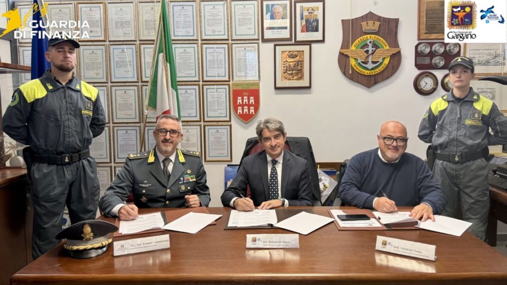 Venerdì 3 ottobre, presso la caserma della Guardia di finanza di Termoli, è stato siglato un accordo tra l’Ente Parco Nazionale del Gargano, ente gestore dell’Area Marina Protetta delle isole Tremiti, e il Reparto Operativo Aeronavale.