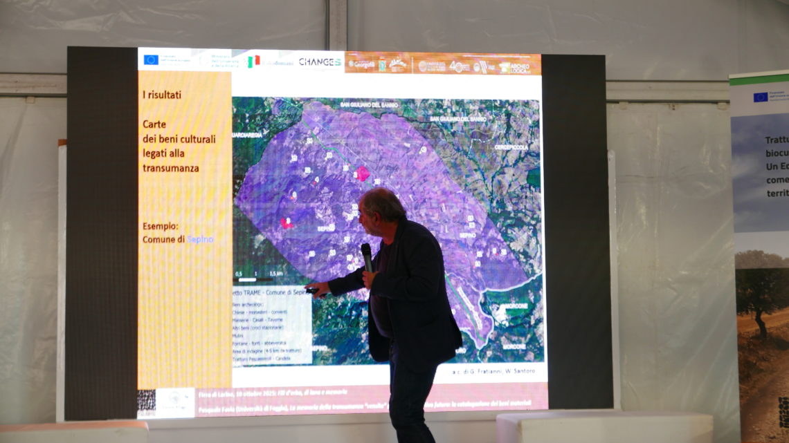 Il 10 e l’11 ottobre, nel quadro della 282° edizione della Fiera di Larino, il progetto T.R.A.M.E. (Transumanza. Ricerca. Archivi. Memoria. Ecomuseo), finanziato dal programma CHANGES PNRR, ha organizzato un programma di attività dal nome “Fili d’erba, di lana e memoria”. Nello specifico si è trattato di un seminario di presentazione dei dati acquisiti durante l’attività di ricerca sul campo lungo le direttrici tratturali del Pescasseroli-Candela e del Lucera-Castel di Sangro e di una passeggiata immersiva, le così dette “cattedre ambulanti”, il cui percorso si è concluso all’interno delle mura dell’anfiteatro romano. Hanno partecipato alle attività previste oltre al pubblico della “fiera d’ottobre” anche due classi del Liceo Classico e Scientifico “F.D’Ovidio” dell’Istituto Omnicomprensivo di Larino.