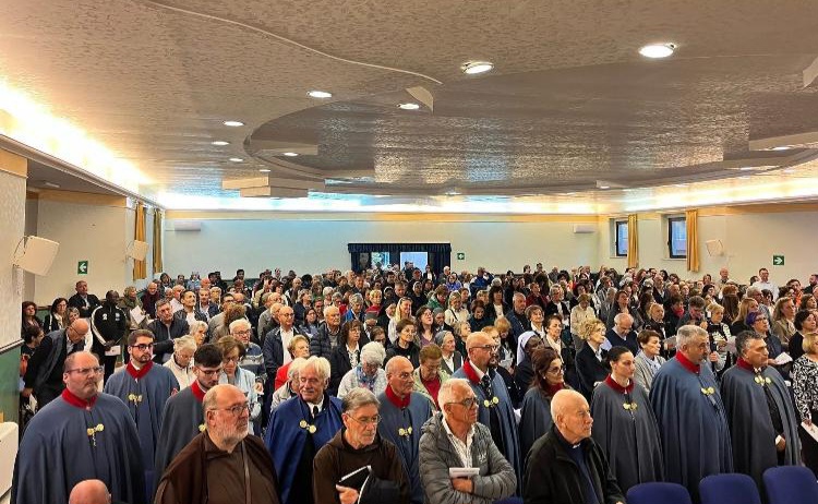 Si è tenuta presso la Parrocchia “Santa Maria degli Angeli” di Termoli l’Assemblea Diocesana di inizio anno pastorale 2025/26, dal tema “CONGREGAVIT NOS IN UNUM, EUCARISTIA E SINODALITA’“. Alla presenza di Mons. Claudio Palumbo, Vescovo della Diocesi Termoli-Larino, dopo la preghiera iniziale, è stato accolto, in un clima di profonda spiritualità, l’intervento del Cardinale MARCELLO SEMERARO, Prefetto del Dicastero della causa dei Santi, che con parole toccanti ha esortato l’assemblea ad aprire l’anno pastorale lasciandosi illuminare dal mistero dell’Eucaristia, sorgente e vertice della vita cristiana, affinché si rinnovi in noi il desiderio di comunione: quella comunione che nasce dall’ascolto della Parola, dal silenzio che accoglie, e dal dono che ciascuno fa di sé. Durante l’incontro sono stati consegnati i mandati a catechisti e ministri straordinari della Comunione. All’assemblea ha presenziato una rappresentanza delegalizia SMOC Molise, guidata dal Segretario Cav. Comm. Giuseppe D’Amico, unitamente a Cavalieri e Dame, che, a fine incontro, ha salutato le LL. Ecc.ze Rev.me, alle quali ha inoltrato i saluti del Gran Maestro S.A.R. il Principe Carlo di Borbone delle Due Sicilie, Duca di Castro e Capo della Real Casa, nonchè del Delegato SMOC per il Molise, duca Ettore d’Alessandro. Al Cardinale Semeraro, che ha molto gradito, è stato fatto dono di una scultura in pietra recante il simbolo della Croce Costantiniana, che rappresenta la vittoria del Cristianesimo e l’affermazione della fede come potenza vincente.