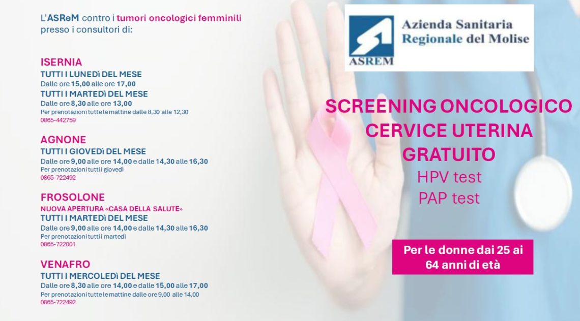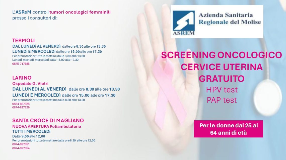 Screening alla cervice uterina: nuove aperture ed incremento dei giorni di esecuzione dei prelievi in Molise. A renderlo noto è l’Asrem. Di seguito tutti i dettagli.