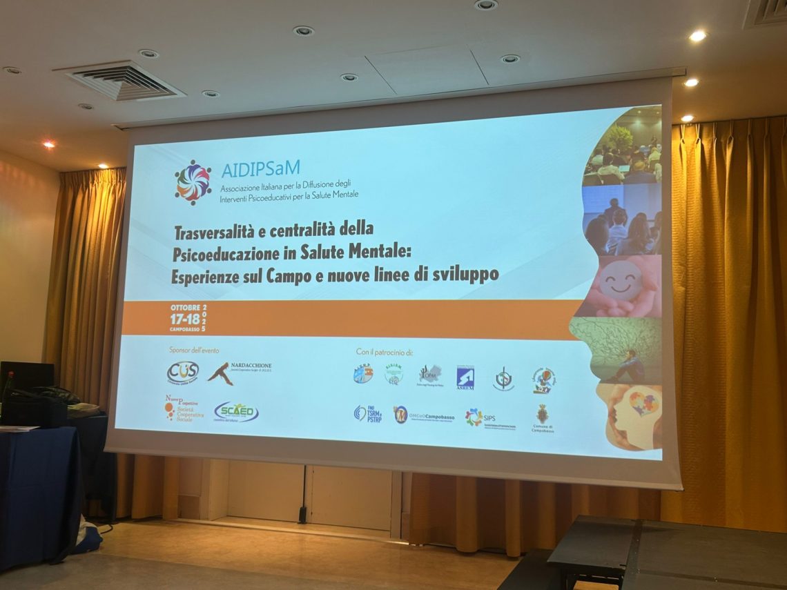 Si è concluso con grande partecipazione il primo evento scientifico organizzato dall’Associazione Italiana per la Diffusione degli Interventi Psicoeducativi (AIDIPSaM) per la Salute Mentale, dal titolo “Trasversalità e centralità della Psicoeducazione in Salute Mentale: Esperienze sul campo e nuove linee di sviluppo”, svoltosi il 17 e 18 ottobre presso il Centrum Palace Hotel di Campobasso.