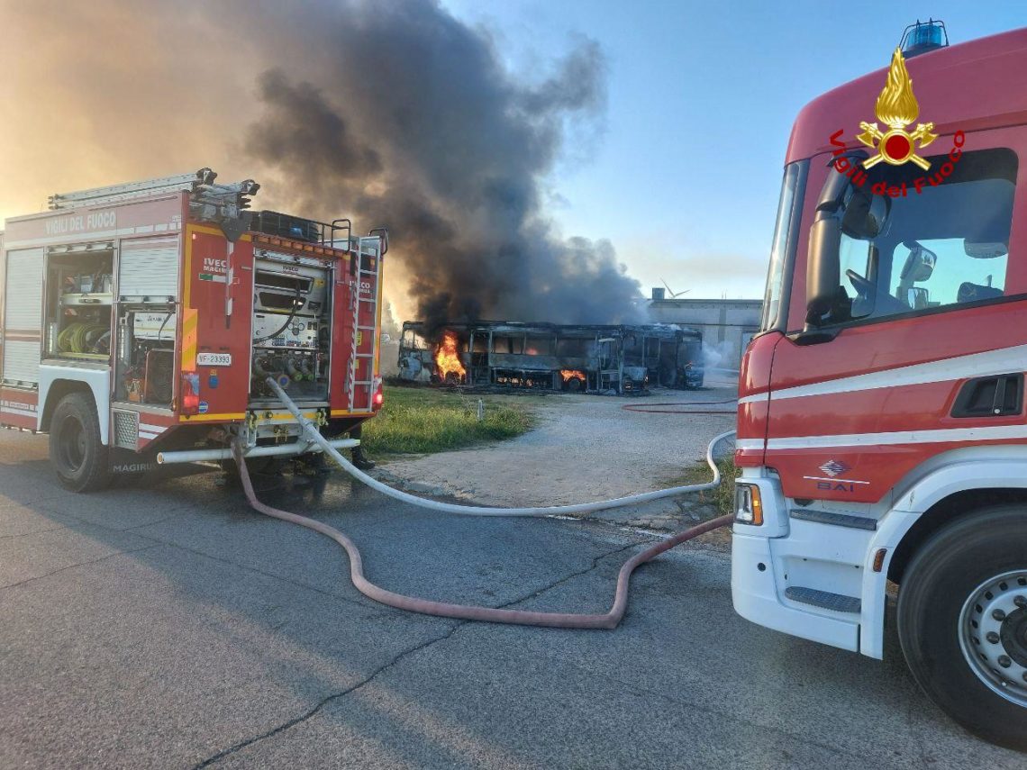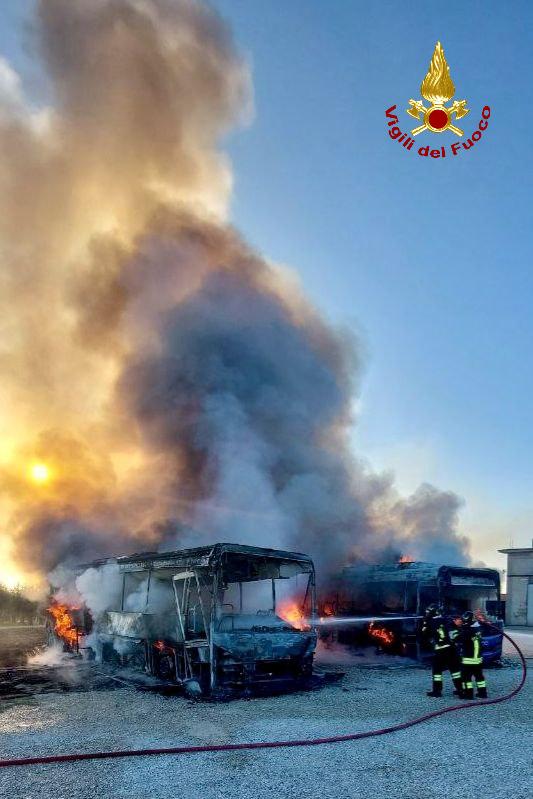 - Incendio in un piazzale di sosta, due pullman divorati dalle fiamme