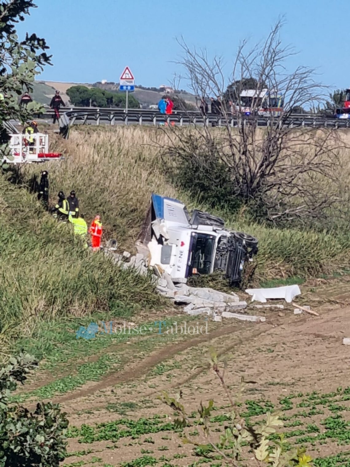 Ore 13.20. Un tragico scontro frontale si è verificato intorno alle ore 13 sulla Statale 647 Bifernina all’altezza di uno degli svincoli per Larino. L’impatto tra un camion e un’auto ha fatto registrare un decesso. Il mezzo pesante è uscito fuori strada, finendo capovolto nel dirupo a lato della carreggiata. Pesantemente danneggiata l’auto, una Ford Fiesta blu, che si muoveva in direzione Termoli al momento del sinistro e al cui interno viaggiava la vittima (un giovane uomo). Grave invece il camionista. Il traffico è bloccato con code chilometriche su entrambe le direzioni. Sul posto ambulanze, Vigili del Fuoco, personale Anas e forze dell’ordine.