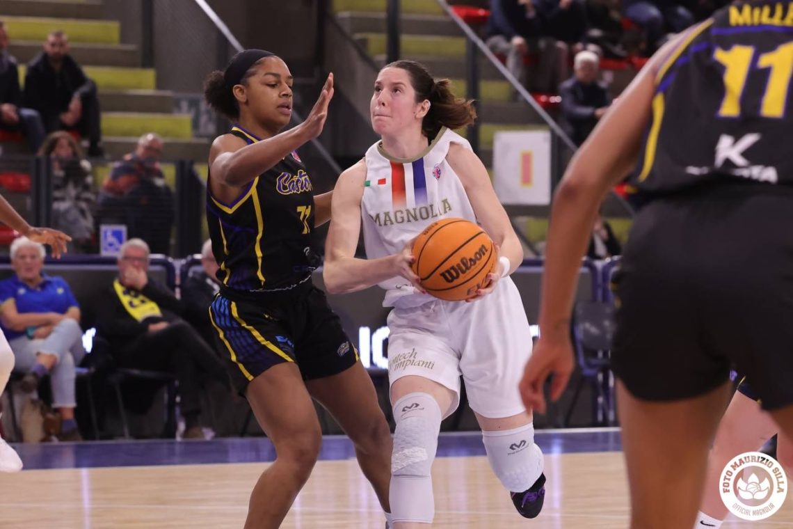 È Ceré a realizzare nella prima fase del quarto periodo per le rossoblù. Madera incrementa il margine, poi Giacchetti sigla l’ottantesimo punto dalla lunetta. Makurat realizza un altro +28 nel corso della contesa (82-54). Poi Giacchetti toglie il tappo dalla linea dei liberi ad una lunga astinenza offensiva. Va a segno anche Miccoli, poi è un tiro libero di capitan Trimboli a sigillare il +27 finale.