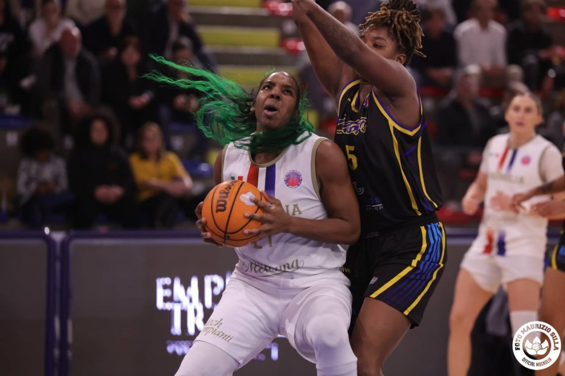 È Ceré a realizzare nella prima fase del quarto periodo per le rossoblù. Madera incrementa il margine, poi Giacchetti sigla l’ottantesimo punto dalla lunetta. Makurat realizza un altro +28 nel corso della contesa (82-54). Poi Giacchetti toglie il tappo dalla linea dei liberi ad una lunga astinenza offensiva. Va a segno anche Miccoli, poi è un tiro libero di capitan Trimboli a sigillare il +27 finale.