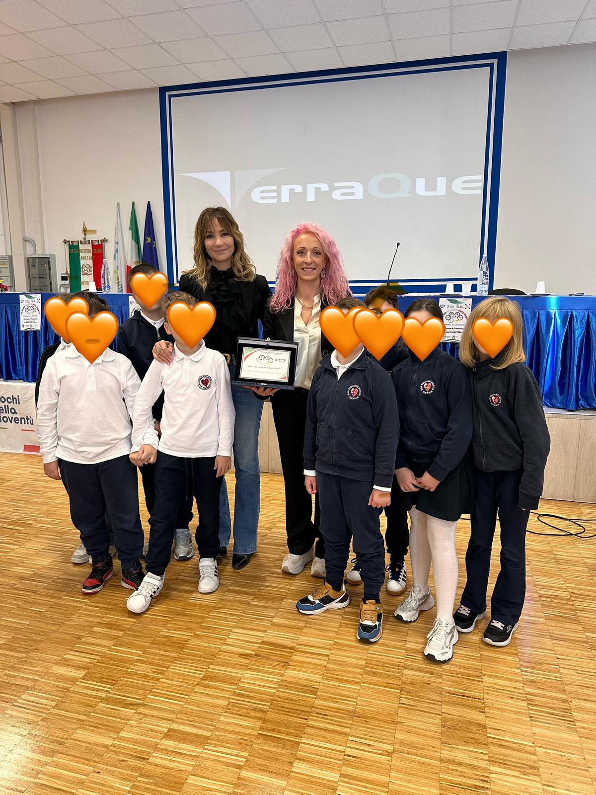 La Scuola è stata insignita di una Targa per il progetto “Scuola Attiva Kids”, che valorizza il lavoro svolto nella promozione dello Sport nella Scuola Primaria, e di un Trofeo per il titolo di “Scuola + Sportiva”, riconoscimento destinato agli Istituti che si distinguono per la qualità, la continuità e la ricchezza delle attività motorie e sportive proposte ai propri alunni.