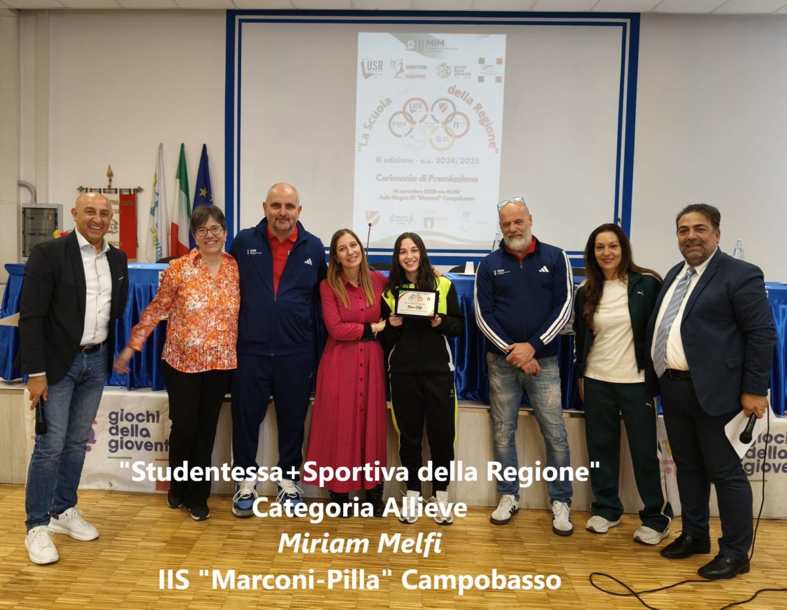 9. “Studentessa+Sportiva della Regione” Cat. Allieve a Miriam Melfi dell’IIS “Marconi-Pilla” di Campobasso;