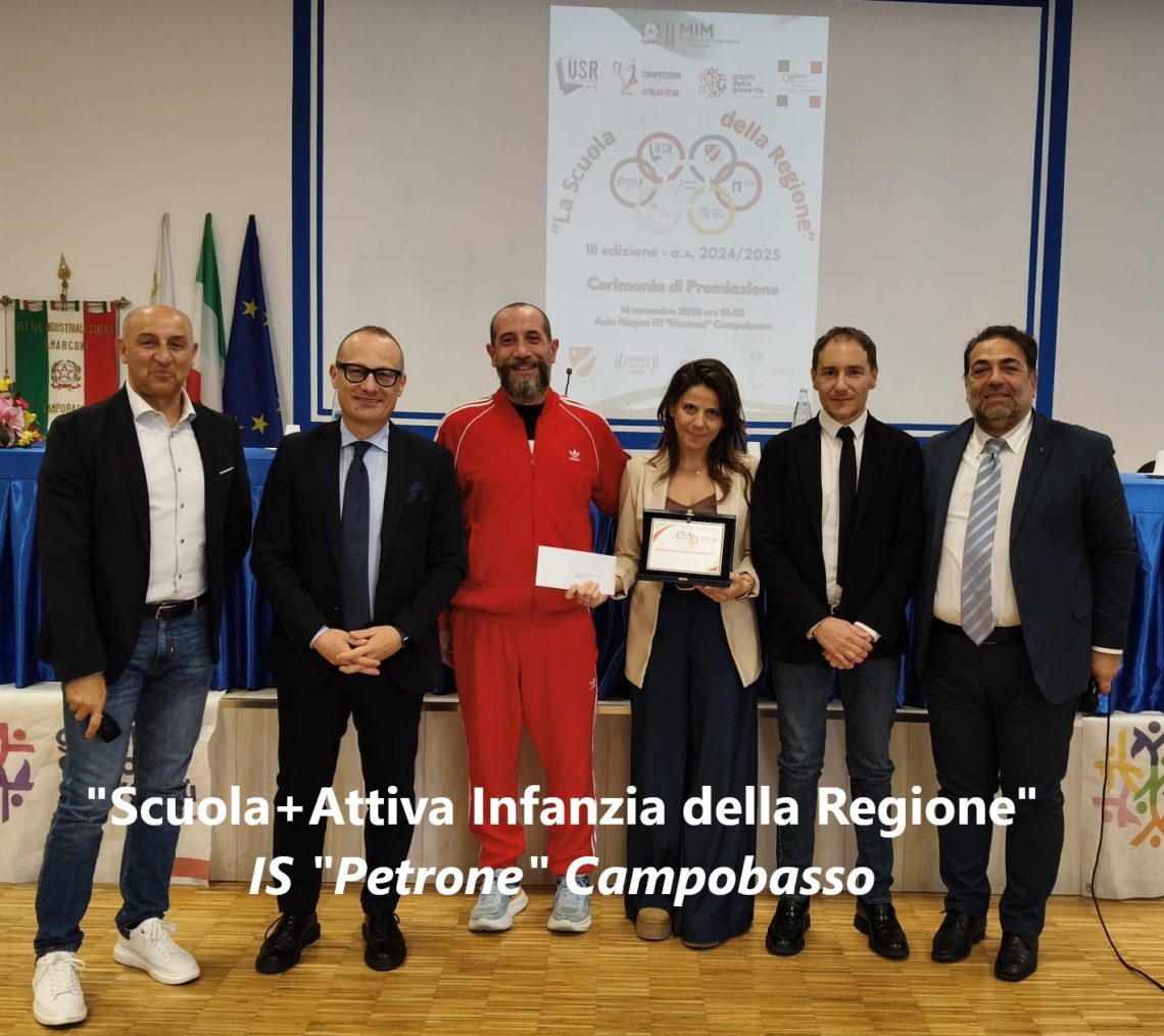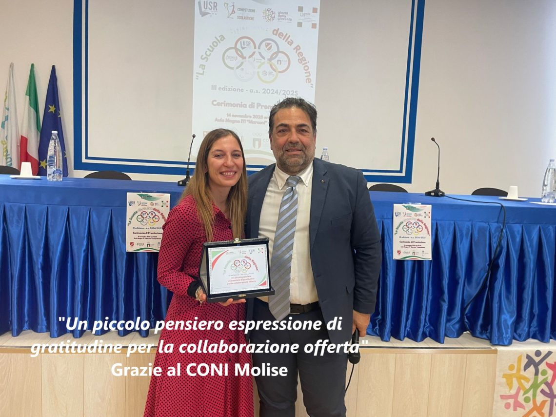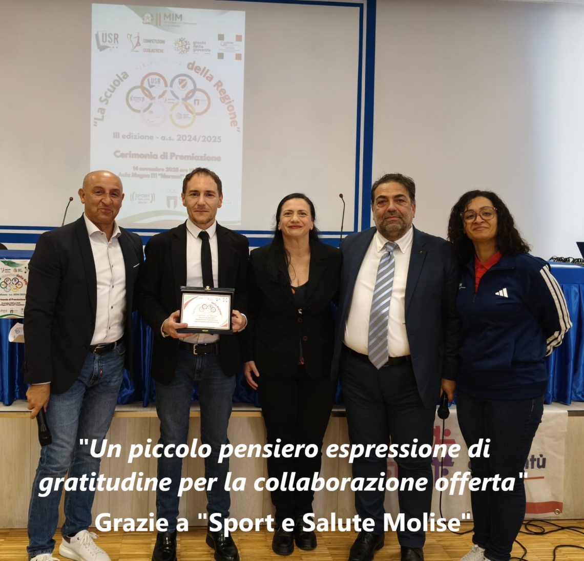 Valorizzare l’eccellenza nella pratica sportiva, a tutti i livelli, e offrire agli studenti la possibilità di crescere, mettendosi in gioco. Si è conclusa la terza edizione de “La Scuola+Sportiva della Regione”, concorso promosso dall’Ufficio Scolastico Regionale per il Molise – Coordinamento Educazione Motoria, Fisica e Sportiva. La cerimonia finale si è svolta lo scorso venerdì, alle ore 10:00, nell’Aula Magna dell’Istituto Tecnico “Marconi” di Campobasso. Al progetto hanno partecipato tutte le scuole molisane. Il concorso è diviso in due sezioni: “Scuole secondarie di primo grado” e “Scuole secondarie di secondo grado”. Sedici i premi consegnati agli istituti scolastici e ai vincitori dai rappresentanti delle autorità politiche, scolastiche e sportive.