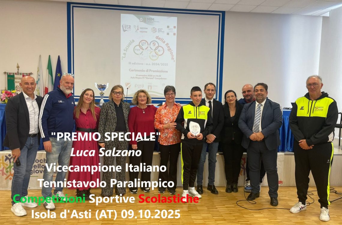 14. “Premio Speciale” a Luca Salzano del’IIS “Marconi-Pilla” di Campobasso, laureatori Vicecampione Italiano di Tennistavolo Paralimpico alle Ultime Finali Nazionali delle Competizioni Sportive Scolastiche, svoltesi lo scorso ottobre ad Isola d’Asti (AT);