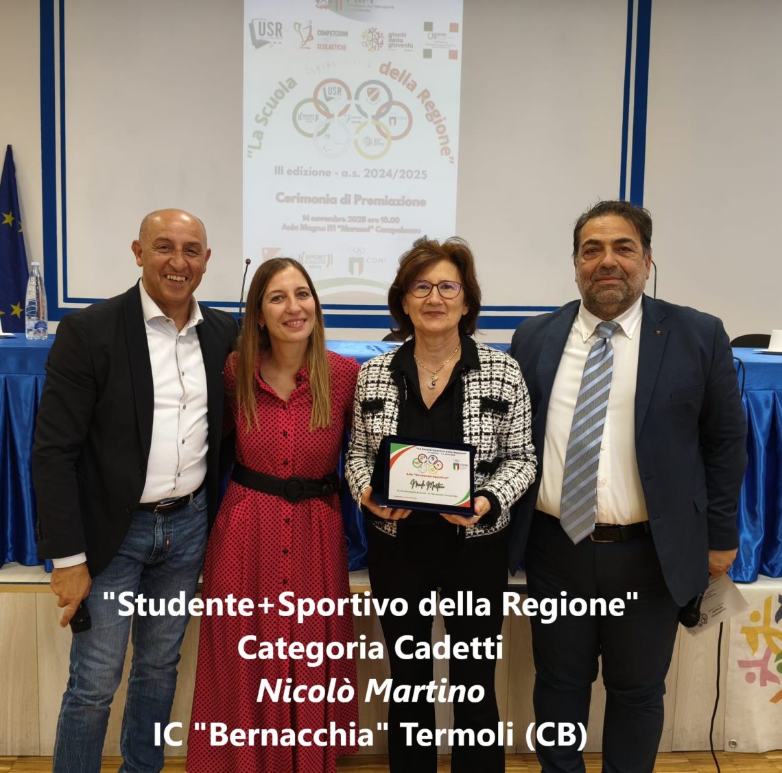 6. “Studente+Sportivo della Regione” Cat. Cadetti a Nicolò Martino dell’IC “Bernacchia” di Termoli (CB);