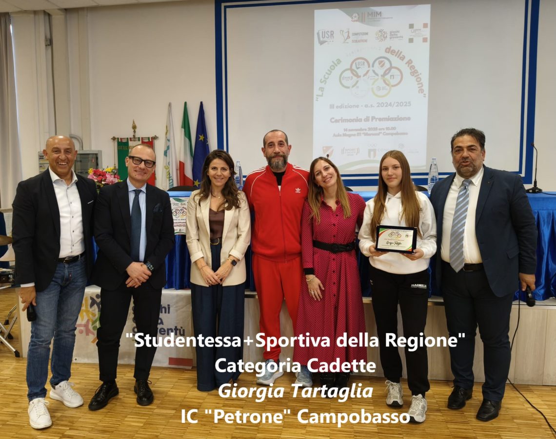 7. “Studentessa+Sportiva della Regione” Cat. Cadette a Giorgia Tartaglia dell’IC “Petrone” di Campobasso;