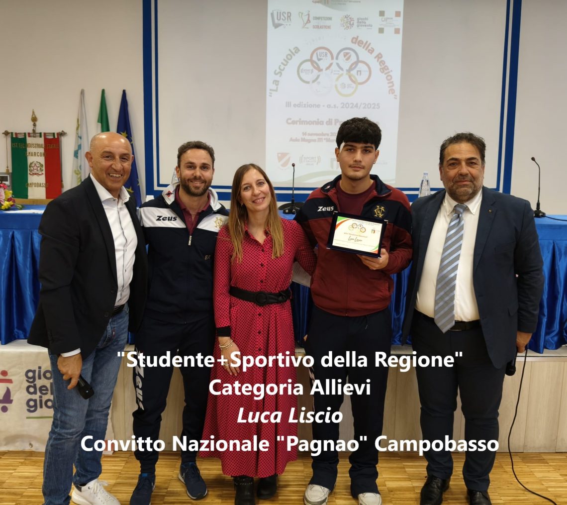 8. “Studente+Sportivo della Regione” Cat. Allievi a Luca Liscio del Convitto Nazionale “Pagano” di Campobasso;