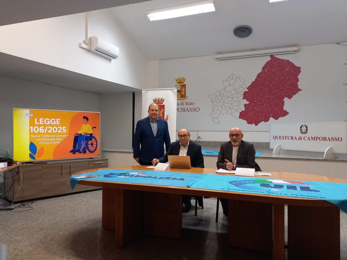 La materia che riguarda uno dei tanti aspetti dell’assistenza a persone fragili ed in particolare a persone diversamente abili con disabilità gravi è stata trattata prima dall’avvocato Ottavio Nappi, dipendente civile dell’Amministrazione Civile dell’Interno, che ha fatto una panoramica legislativa sulla legge 104/92, con particolare riferimento alle novità apportate dalla legge 106/2025, poi da Giuseppe Aurisano, coordinatore regionale ITALUIL MOLISE, che ha trattato le procedure per chiedere ed ottenere i benefici della legge 104/92 anche alla luce dei nuovi risvolti attuativi, dall’avvocato penalista del foro del Tribunale di Campobasso Fabio Del Vecchio, legale in convenzione con la UILPOLIZIA, che ha parlato dei risvolti civilistici e penalmente rilevanti dall’utilizzo dei benefici della legge in trattazione, e dal segretario generale provinciale Giovanni Alfano che ha svolto le funzioni di moderatore.