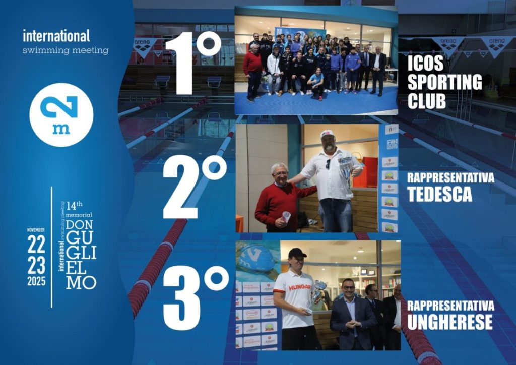 La Icos Sporting Club ha vinto la quattordicesima edizione del Memorial Don Guglielmo, il meeting internazionale di nuoto organizzato dalla Società Sportiva M2 e riservato alle categorie ragazzi, juniores ed assoluti di scena nel fine settimana trascorso nella piscina del Centro Sportivo di Campodipietra.
