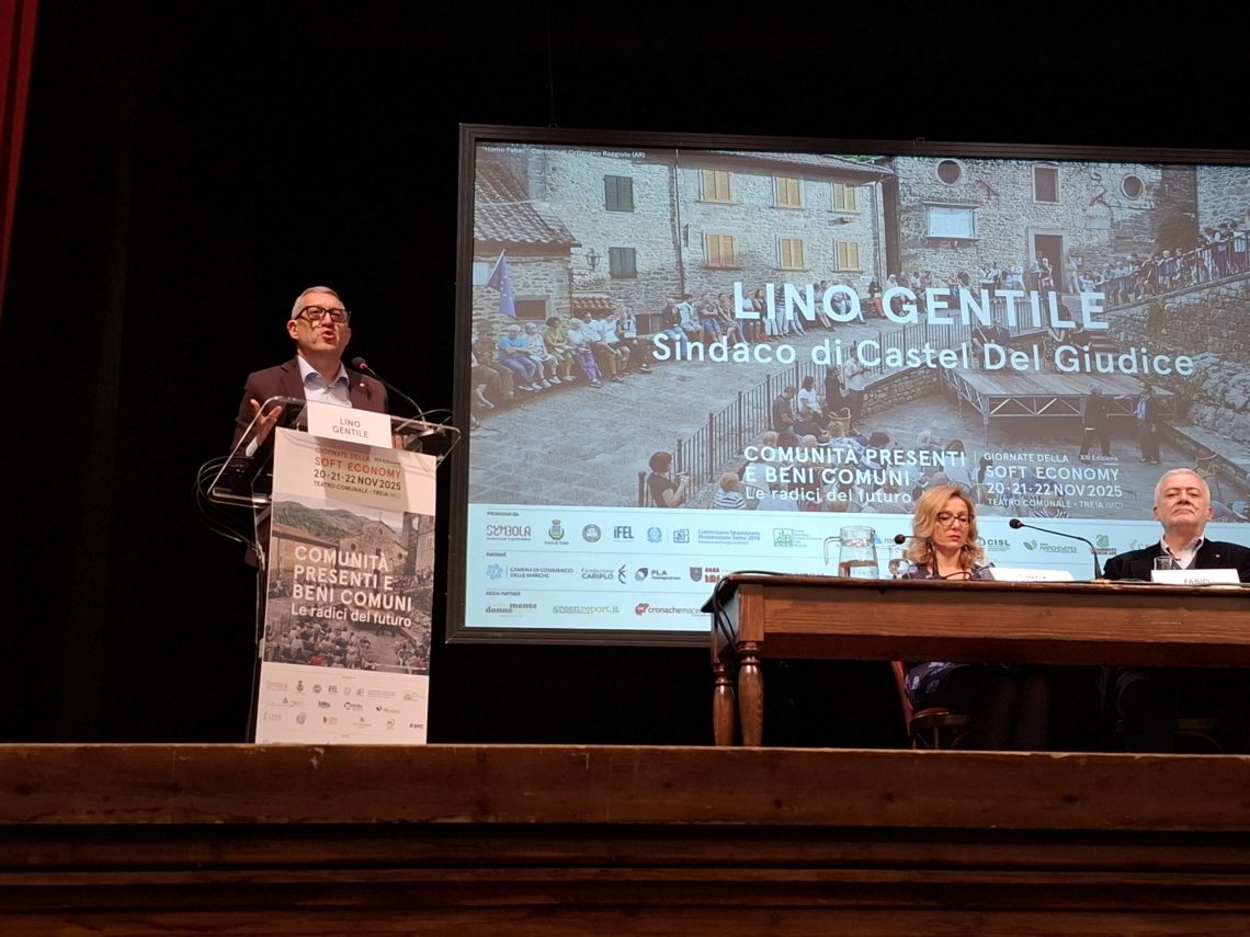 Sulle tematiche dei beni comuni e della loro trasformazione in nuova ricchezza agroforestale è intervenuto il sindaco Lino Gentile il 21 novembre a Treia (MC) in occasione della XIII edizione della Giornate della Soft Economy promosse dalla Fondazione Symbola. Nel corso della sessione dedicata a “La Ricchezza del bosco: bilanci pubblici, patrimoni privati e beni comuni”, in collaborazione con Ifel e Commissario straordinario ricostruzione Sisma 2016, il primo cittadino ha spiegato come: «Uscire dalla dimensione difensiva e superare la forma di attendismo dei territori delle aree interne è condizione essenziale per sperimentare nuove frontiere di innovazione a vantaggio del Paese, grazie anche al ruolo attivo del patrimonio comunale per nuovi progetti di sviluppo. A Castel del Giudice ci siamo dotati di un regolamento che disciplina la ricognizione di terreni e fabbricati in stato di abbandono e di degrado per renderli patrimonio di interesse comune e la cui acquisizione è finanziata tramite la vendita derivante dal taglio dei boschi. Si crea in tal modo un fondo rotativo che si autoalimenta nel tempo». La prima edizione di Borghi in Dialogo, nei comuni piemontesi di Cartignano, Roccabruna e San Damiano Macra, è stata invece occasione di discussione e riflessione sul futuro dei piccoli borghi alla luce degli interventi previsti dal Bando Borghi Linea A del PNRR. Il sindaco Lino Gentile ha portato l’esempio di Castel del Giudice nel corso della tavola rotonda del 22 novembre dal tema “Riabitare le terre alte” illustrando i tre assi strategici del progetto “Castel del Giudice Centro di (ri)generazione dell’Appennino”, che puntano su welfare e comunità, sviluppo sostenibile ed economia locale, turismo creativo ed accoglienza.