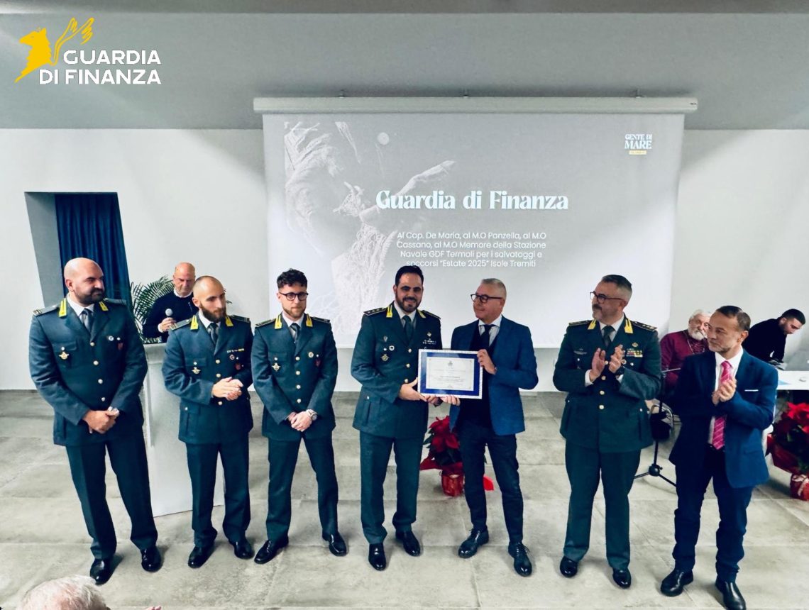 Nel pomeriggio del 5 dicembre, presso l’Auditorium di via Elba, alcuni militari della Stazione Navale della Guardia di finanza, dipendente dal Reparto Operativo Aeronavale (R.O.An.) di Termoli, sono stati insigniti del prestigioso Premio “Gente di Mare”, giunto alla sua 38esima edizione. Il riconoscimento dell’Amministrazione comunale di Termoli celebra l’impegno sociale, culturale e professionale delle Fiamme Gialle.