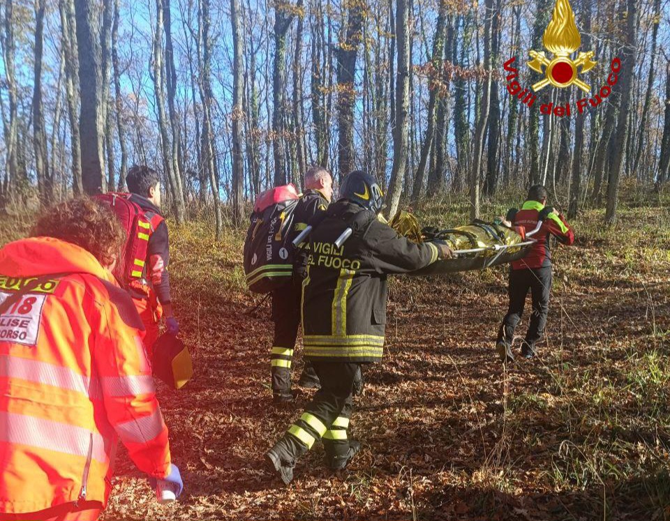 Il personale dei Vigili del Fuoco, operando in sinergia con il Soccorso Alpino anch’esso intervento, ha quindi provveduto a posizionare la persona su una barella portantina, iniziando un trasporto manuale lungo il tratto boschivo. L’ambulanza si trovava a circa 400 metri dal punto dell’incidente.