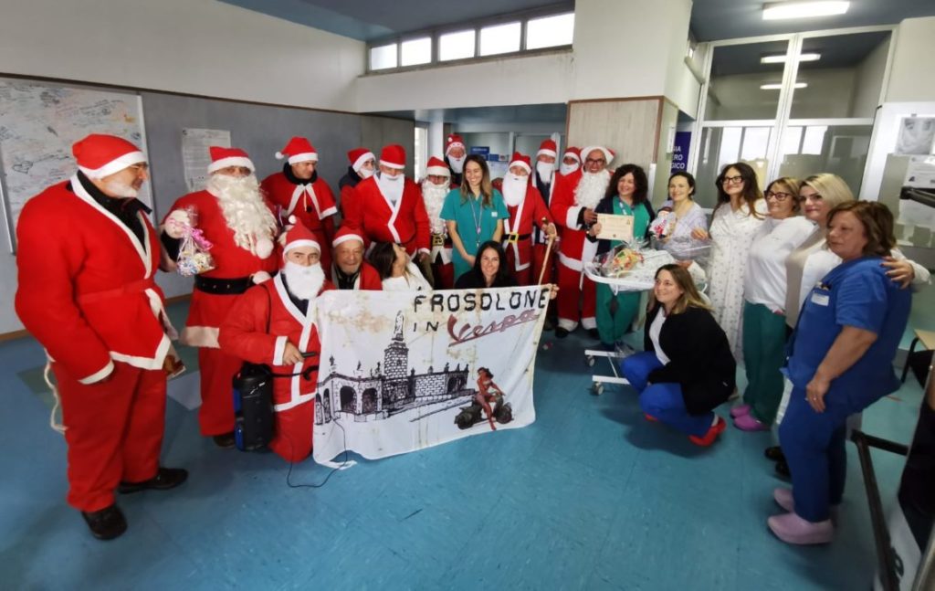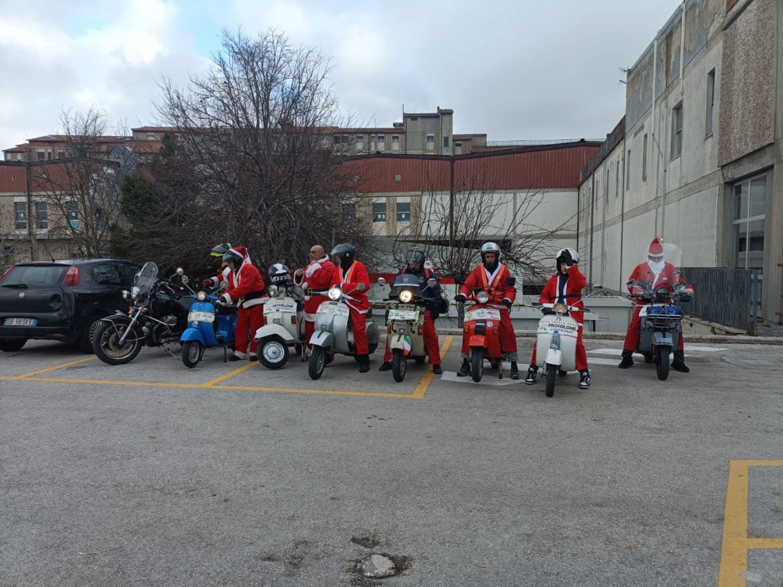 Il rombo inconfondibile delle Vespe ha rotto il silenzio della domenica pomeriggio all”ospedale Cardarelli di Campobasso per una consegna speciale. Circa dieci componenti dell’associazione “Frosolone in Vespa”, rigorosamente vestiti da Babbo Natale, hanno fatto tappa nel nosocomio del capoluogo per una missione di pura solidarietà.