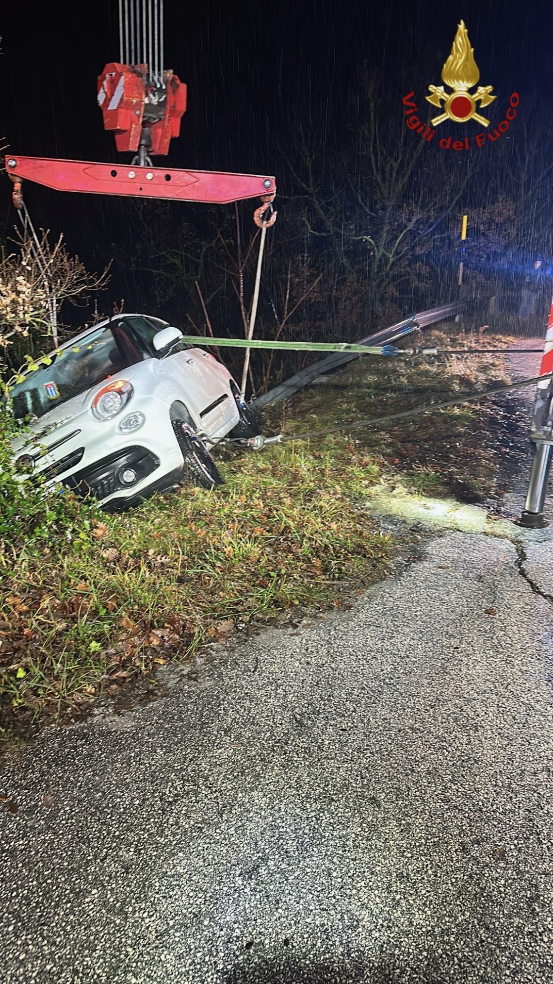 La squadra è intervenuta con autopompaserbatoio (APS) e autogru, provvedendo, mediante tecniche di soccorso tecnico urgente e in stretta collaborazione con il personale sanitario del 118, all’estrazione della persona rimasta bloccata nel veicolo, previa messa in sicurezza dell’autovettura al fine di evitare la rovinosa caduta nella sottostante scarpata.