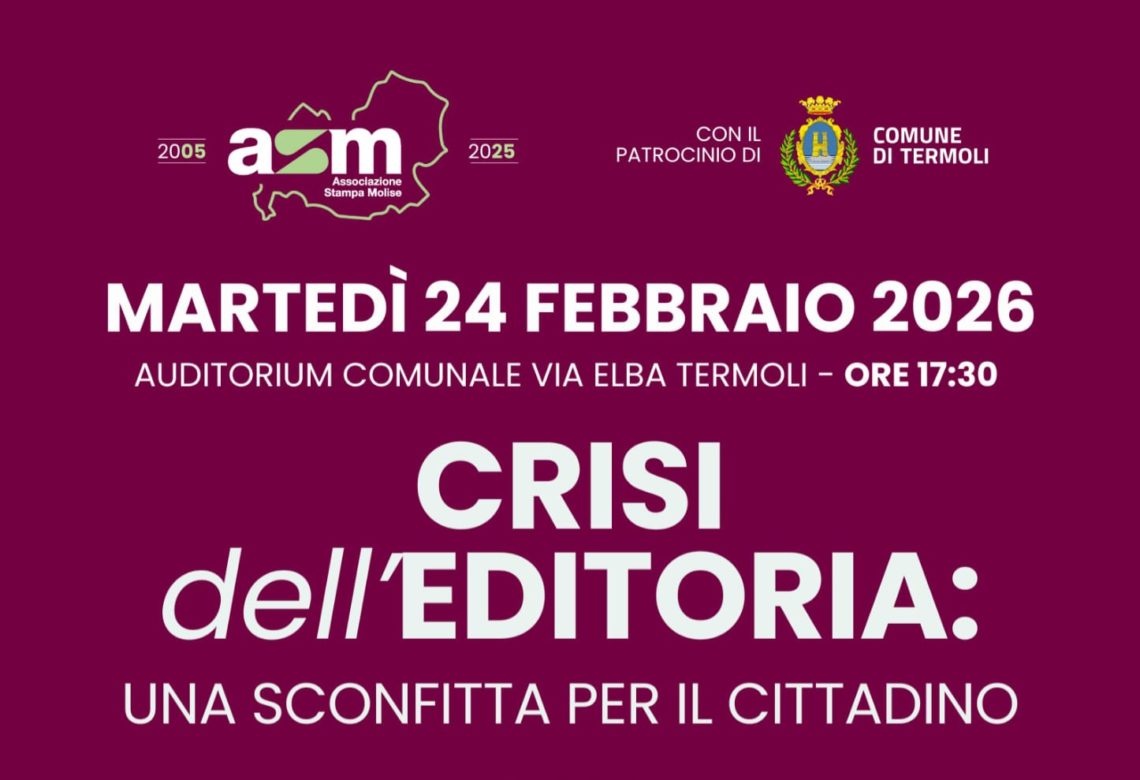 Per i 20 anni dell’Associazione Stampa Molisana, si terrà il 24 febbraio un convegno a Termoli all’auditorium comunale di via Elba dal titolo: “Crisi dell’editoria, una sconfitta per