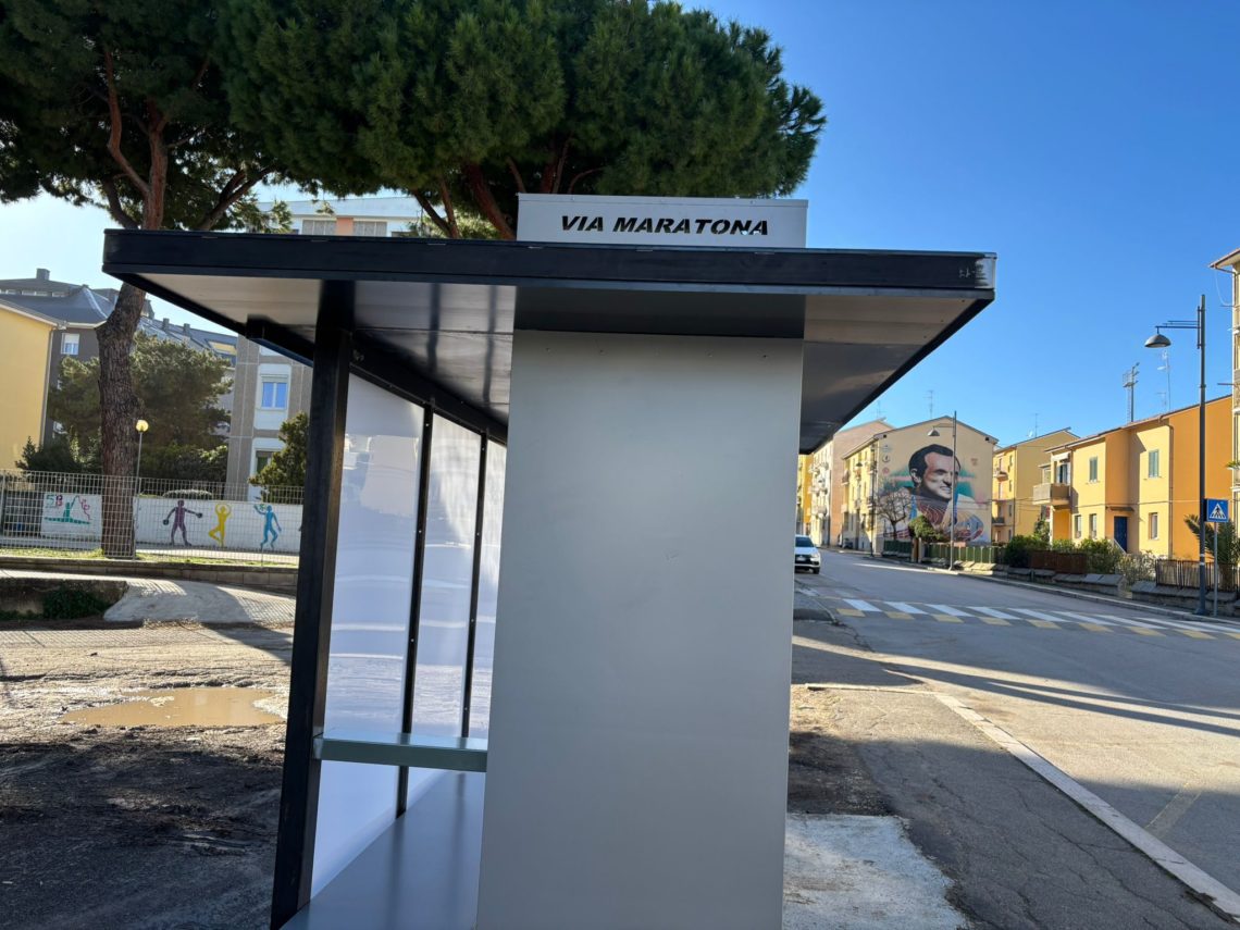 Cinque nuove pensiline bus in arrivo in città. Lo comunica l’assessore ai Lavori Pubblici Enrico Miele. Due sono state già installate, la prima in via Firenze vicino allo skate park e l’altra in via Maratona nei pressi della Scuola Elementare.