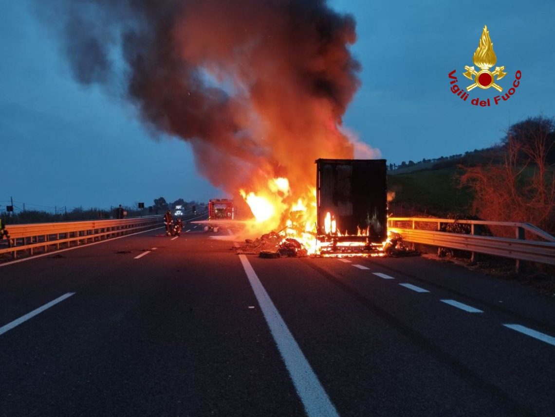 - Panico all’alba in A14, autoarticolato divorato dalle fiamme. FOTO