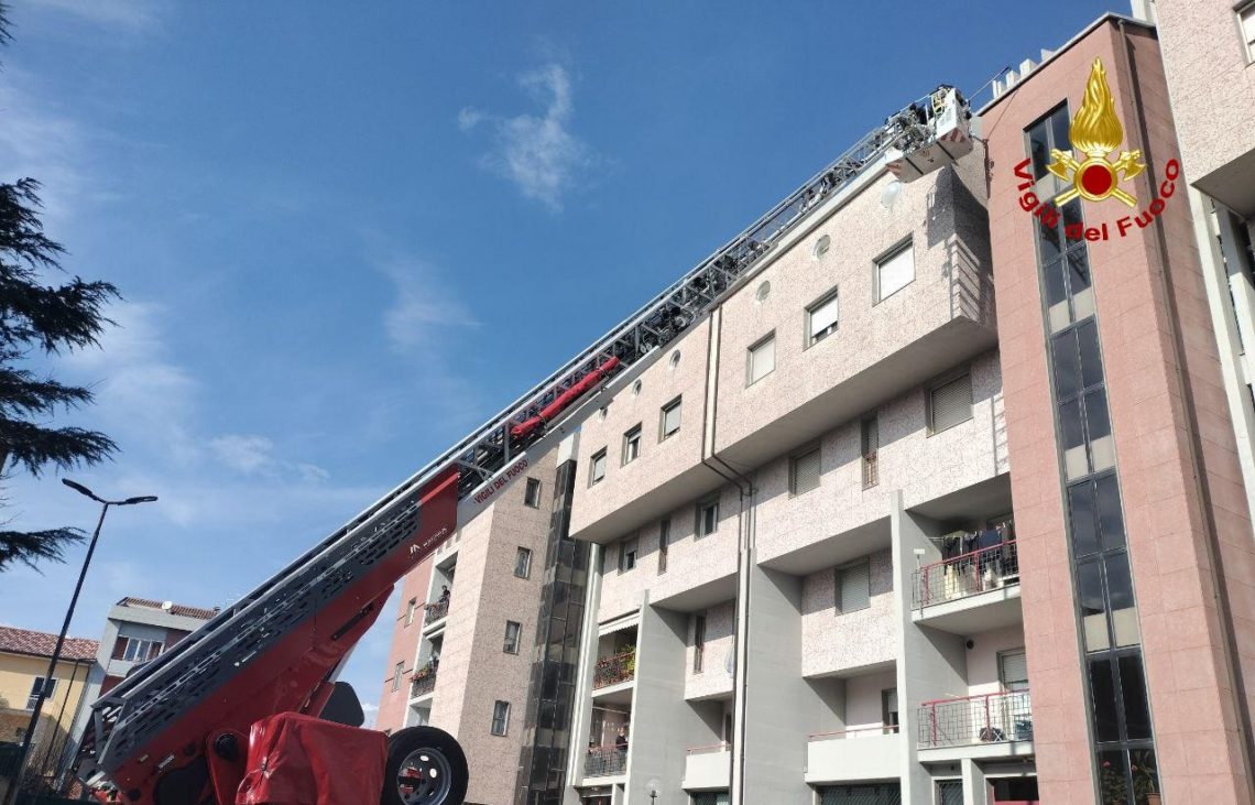 - Si staccano calcinacci dal cornicione del palazzo, intervento dei Vigili del Fuoco in via Piave