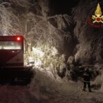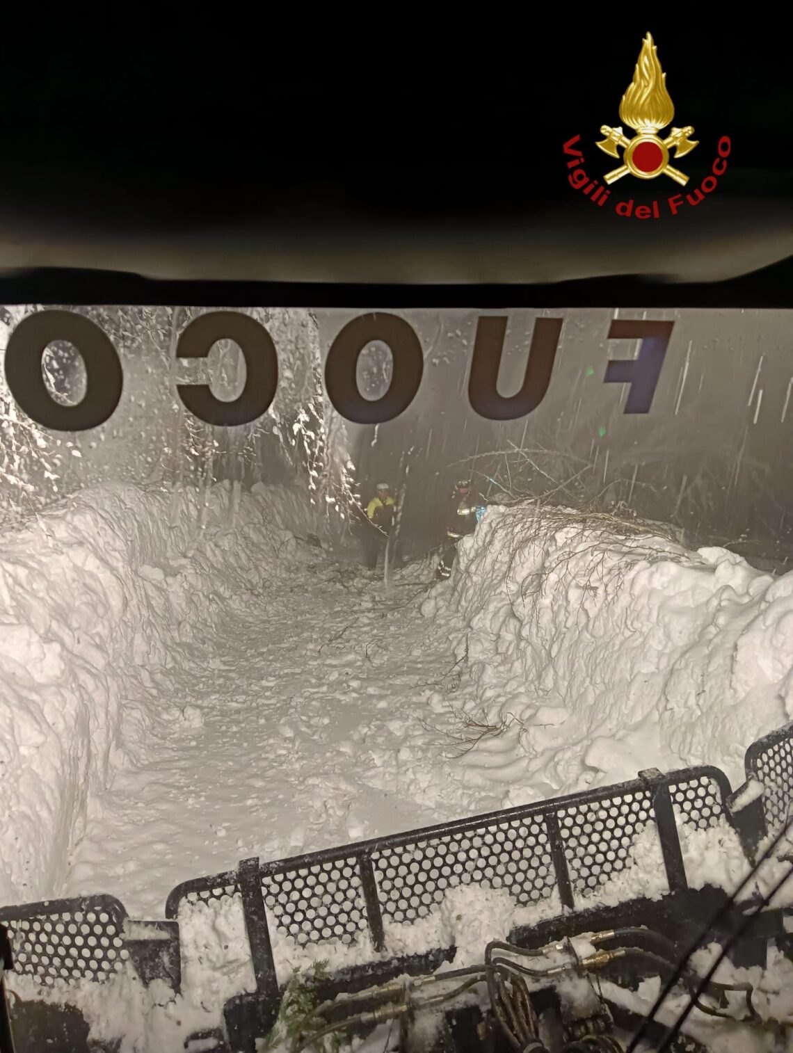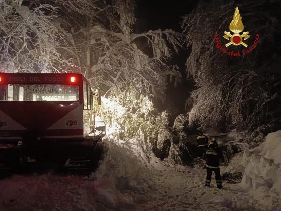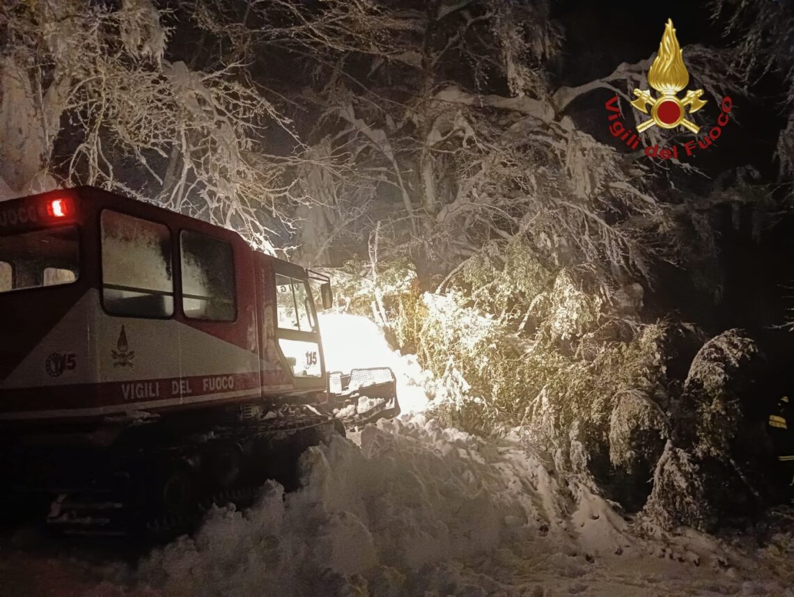 I Vigili del Fuoco del distaccamento di Agnone, intervenuti nella notte, hanno operato con l’ausilio di un gatto delle nevi per la riapertura della strada che da Pescopennataro conduce al fondovalle Sangro.