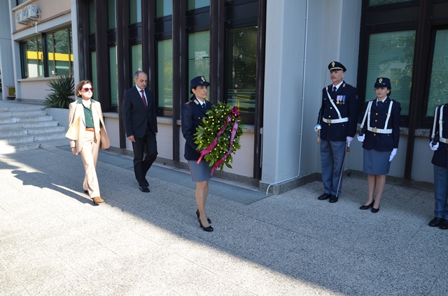 La cerimonia istituzionale è stata preceduta dalla deposizione di una corona d’alloro presso la lapide dedicata ai Caduti della Polizia di Stato posta all’ingresso della Questura, per omaggiare nel giorno dell’Anniversario il ricordo di chi ha speso la propria vita per onorare i profondi valori racchiusi nella divisa da poliziotto indossata.
