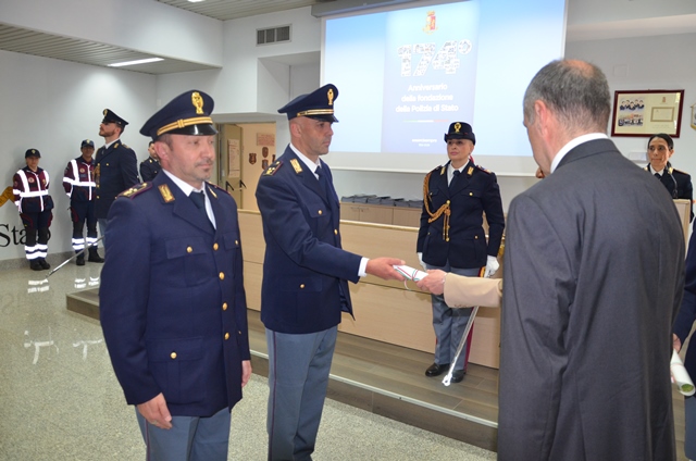 Si è svolta questa mattina presso l’Aula Magna della Scuola Allievi Agenti “Giulio Rivera” la cerimonia istituzionale per il 174° Anniversario della Fondazione della Polizia di Stato, alla presenza delle massime autorità, dei rappresentanti della Sezione ANPS e dei familiari delle Vittime del Dovere. L’iniziativa è stata improntata a toni di sobrietà in considerazione del particolare momento che l’intera provincia si trova ad affrontare in questi giorni a causa dell’emergenza idrogeologica da cui è stata colpita.