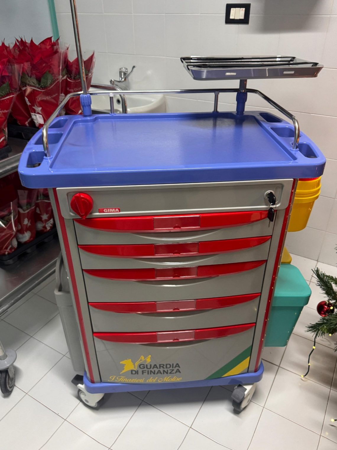 I finanzieri di tutto il Molise hanno donato al reparto un carrello medico destinato all’emergenza neonatale ed ai bambini sono stati consegnati piccoli doni, gadget e pandori, mentre il personale ospedaliero femminile è stato omaggiato con stelle di Natale.