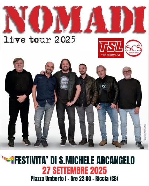 I festeggiamenti in onore di San Michele continuano a Riccia con la seconda serata, che promette emozioni e grandi ricordi. Domani, sabato 27 settembre, in Piazza Umberto I il palco della festa ospiterà una delle band più amate e longeve della storia della musica italiana: i Nomadi. Un appuntamento imperdibile per tutti gli amanti del grande rock e del folk d’autore.
